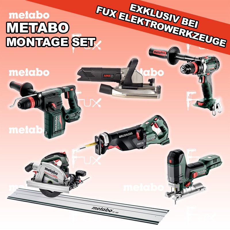 Das Ladenlokal bleibt vom 25. Dezember 2025 bis am 04. Januar 2026 geschlossen. Bestellungen und Lieferungen von Neugeräten werden trotz Ferienabwesenheit in gewohnter Fux-Manier entgegengenommen und ausgeliefert. Heute auf dieses Produkt 26% Rabatt! Zu "Fenster / Tür Montage Set" von Metabo FULL Service: 36 Monate zum Nulltarif für Sie! Weitere Infos zum FULL Service Dieses Produkt ist CAS kompatibel! Weitere Infos zu CAS Sparfux Aktionen FUX SPECIAL EXKLUSIV BEI FUX Metabo Fenster und Tür Montage Set 1 SOLO Bestell- und Artikelnummer: Fenster Set 1 SOLO ST 18 LT 130 BL Akku-StichsägeAkkuspannung 18 V Hubzahl 1000-3.500 /min Gewicht ohne Akkupack 1.5 kgInfos BS 18 LTX BL Q I Akku-BohrschrauberAkkuspannung 18 V Drehzahl 0-550 / 0-2000 U/min Drehmoment hart / weich 130 / 65 Nm Gewicht (mit Akkupack) 2.3 kgInfos KH 18 LTX BL 24 Q Akku-KombihammerAkkuspannung 18 V Einzelschlagstärke 2.2 J Bohrleistung in Beton 24 mm Gewicht ohne Akkupack 3 kgInfos KS 18 LTX 66 BL Akku HandkreissägeAkkuspannung 18 V Schnitt-Tiefe bei 90° 0-66 mm Sägeblatt 165 mm Gewicht 4.5 kgInfos SSEP 18 LTX BL MVT Akku-SäbelsägeAkkuspannung 18 V Hubzahl bei Leerlauf 0 - 3.000 /min Gewicht (mit Akkupack) 4.6 kgInfos 1400 FFF FensterfugenfräseAufnahmeleistung: 1400 Watt Schnitttiefe von 68 mm Gewicht 4.38 kg Netzanschluss: 7.5 mInfos FS 160 FührungsschieneGesamtlänge 1600 mmInfos OHNE AKKUS UND LADEGERÄT Standard-Ausrüstung In diesem Set enthalten: ST 18 LT 130 BL Akku-Stichsäge BS 18 LTX BL Q I Akku-Bohrschrauber KH 18 LTX BL 24 Q Akku-Kombihammer KS 18 LTX 66 BL Akku Handkreissäge SSEP 18 LTX BL MVT Akku-Säbelsäge 1400 FFF Fensterfugenfräse FS 160 Führungsschiene Zubehör Verbrauchsmaterial Listenpreis CHF 3'586.50 Fuxpreis CHF 2'628.00 inkl. 8.1% MwSt, inkl vRG Versand CHF 40.00 Kein Grauimport! Produkt bestellen 1 Stück 2 Stück 3 Stück 4 Stück 5 Stück 6 Stück 7 Stück 8 Stück 9 Stück 10 Stück Alle Angaben ohne Gewähr und solange Vorrat reicht!Wiederverkäufer werden? Produkt als PDFVideo LiHD 1Video LiHD 2 AKTION 26%