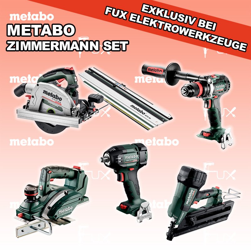 Das Ladenlokal bleibt vom 25. Dezember 2025 bis am 04. Januar 2026 geschlossen. Bestellungen und Lieferungen von Neugeräten werden trotz Ferienabwesenheit in gewohnter Fux-Manier entgegengenommen und ausgeliefert. Heute auf dieses Produkt 27% Rabatt! Zu "Zimmermann Set" von Metabo FULL Service: 36 Monate zum Nulltarif für Sie! Weitere Infos zum FULL Service Dieses Produkt ist CAS kompatibel! Weitere Infos zu CAS Sparfux Aktionen FUX SPECIAL EXKLUSIV BEI FUX Metabo Zimmermann SET 10 SOLO Bestell- und Artikelnummer: Zimmermann SET 10 SOLO BS 18 LTX BL Q I Akku-BohrschrauberAkkuspannung 18 V Drehzahl 0-550 / 0-2000 U/min Drehmoment hart / weich 130 / 65 Nm Gewicht (mit Akkupack) 2.3 kgInfos SSW 18 LTX 550 BL Akku-SchlagschrauberAkkuspannung 18 V Anziehdrehmoment 550 Nm Werkzeugaufnahme 1/2" Gewicht ohne Akkupack 1,4 kgInfos NFR 18 LTX 90 BL Akku NaglerAkkuspannung 18 V Nagelstreifen Winkel 30 - 34 ° Nagellänge 50 - 90 mm Nageldurchmesser 2,9 - 3,3 mm Gewicht ohne Akkupack 4,1 kgInfos HO 18 LTX 20-82 Akku-Einhand-HobelAkkuspannung 18 V Hobelbreite 82 mm Spanabnahme einstellbar 0-2 mm Gewicht 3.5 KgInfos KS 18 LTX 66 BL Akku HandkreissägeAkkuspannung 18 V Schnitt-Tiefe bei 90° 0-66 mm Sägeblatt 165 mm Gewicht 4.5 kgInfos Kappschiene KFS 44Gesamtlänge 834 mm Schnittlänge 440 mmInfos Registriere die in diesem Set vorhandenen Metabo Maschinen auf metabo.ch, und ergattere dir bis zu 5 Gratis Akkus!Zusätzlich offerieren wir zu diesem Set einen Gratis Akku!OHNE AKKUS UND LADEGERÄT Standard-Ausrüstung In diesem Set enthalten: BS 18 LTX BL Q I Akku-Bohrschrauber SSW 18 LTX 550 BL Akku-Schlagschrauber NFR 18 LTX 90 BL Akku Nagler HO 18 LTX 20-82 Akku-Einhand-Hobel KS 18 LTX 66 BL Akku Handkreissäge Kappschiene KFS 44 Listenpreis CHF 2'253.50 Fuxpreis CHF 1'629.00 inkl. 8.1% MwSt, inkl vRG Versand CHF 25.00 Kein Grauimport! Produkt bestellen 1 Stück 2 Stück 3 Stück 4 Stück 5 Stück 6 Stück 7 Stück 8 Stück 9 Stück 10 Stück Alle Angaben ohne Gewähr und solange Vorrat reicht!Wiederverkäufer werden? Produkt als PDF NEUHEITAKTION 27%
