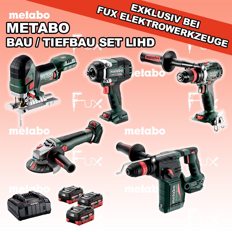 Das Ladenlokal bleibt vom 25. Dezember 2025 bis am 04. Januar 2026 geschlossen. Bestellungen und Lieferungen von Neugeräten werden trotz Ferienabwesenheit in gewohnter Fux-Manier entgegengenommen und ausgeliefert. Heute auf dieses Produkt 31% Rabatt! Zu "Bau / Tiefbau Set" von Metabo FULL Service: 36 Monate zum Nulltarif für Sie! Weitere Infos zum FULL Service Sparfux Aktionen FUX SPECIAL EXKLUSIV BEI FUX Metabo Bau / Tiefbau Set 4 Bestell- und Artikelnummer: Bau / Tiefbau Set 4 BS 18 LTX BL Q I Akku-BohrschrauberAkkuspannung 18 V Drehzahl 0-550 / 0-2000 U/min Drehmoment hart / weich 130 / 65 Nm Gewicht (mit Akkupack) 2.3 kgInfos STA 18 LTX 150 BL Akku-StichsägeAkkuspannung 18 V Hubzahl 1.000-3.500 /min Gewicht ohne Akkupack 1.9 kgInfos KH 18 LTX BL 28 Q Akku-KombihammerAkkuspannung 18 V Einzelschlagstärke 3 J Bohrleistung in Beton 28 mm Gewicht ohne Akkupack 3,4 kgInfos WB 18 LTX BL 15-125 Quick Akku-Winkelschleifer Akkuspannung 18 V so stark wie ein 1500 Watt Netzgerät Drehzahl 10000 U / min Ø 125 mm Scheiben Gewicht mit Akkupack 2,7 kgInfos SSW 18 LTX 800 BL Akku-Schlagschrauber Akkuspannung 18 V Anziehdrehmoment 800 Nm Werkzeugaufnahme 1/2" Gewicht 2.6 kgInfos 3 x 18 V, 5.5 Ah, LiHD Akkupack18 V 5.5 Ah ( LiHD Akkus ) Infos ASC 145, 12 - 36 V "Air Cooled" LadegerätZum Aufladen aller Li-Power Schiebesitz-Akkupacks (12 V - 36 V). Ladestrom 8.0 AInfos Standard-Ausrüstung In diesem Set enthalten: BS 18 LTX BL Q I Akku-Bohrschrauber STA 18 LTX 150 BL Akku-Stichsäge KH 18 LTX BL 28 Q Akku-Kombihammer WB 18 LTX BL 15-125 Quick Akku-Winkelschleifer SSW 18 LTX 800 BL Akku-Schlagschrauber 3 x 18 V, 5.5 Ah, LiHD Akkupack ASC 145, 12 - 36 V "Air Cooled" Ladegerät Listenpreis CHF 2'387.00 Fuxpreis CHF 1'624.00 inkl. 8.1% MwSt, inkl vRG Frankolieferung Kein Grauimport! Produkt bestellen 1 Stück 2 Stück 3 Stück 4 Stück 5 Stück 6 Stück 7 Stück 8 Stück 9 Stück 10 Stück Alle Angaben ohne Gewähr und solange Vorrat reicht!Wiederverkäufer werden? Produkt als PDF NEUHEITAKTION 31%