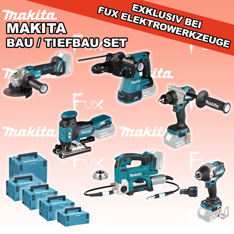 Das Ladenlokal bleibt vom 25. Dezember 2025 bis am 04. Januar 2026 geschlossen. Bestellungen und Lieferungen von Neugeräten werden trotz Ferienabwesenheit in gewohnter Fux-Manier entgegengenommen und ausgeliefert. Heute auf dieses Produkt 32% Rabatt! Zu "Bau / Tiefbau Set" von Makita Sparfux Aktionen FUX SPECIAL EXKLUSIV BEI FUX Makita Bau / Tiefbau Set 4 SOLO Bestell- und Artikelnummer: maBau / Tiefbau Set 4 SOLO DDF492Z Akku-BohrschrauberAkkuspannung 18 V Leerlaufdrehzahl 0 - 550 / 0 - 2100 min⁻¹ Drehmoment hart / weich 130 / 65 Nm Gewicht inkl. Akku 2.3 - 2.6 kgInfos DJV18ZJ Akku-StichsägeAkkuspannung 18 V Hubzahl 800 - 3500/ min Schnittleistung Holz 135 mm / Stahl 10 mm Gewicht 2.5 kgInfos DHR243ZJ Akku-BohrhammerAkkuspannung 18 V Einzelschlagstärke 2.0 J ( EPTA ) Bohrleistung in Beton 24 mm Gewicht 3.4 kgInfos DGA506ZJ Akku-WinkelschleiferAkkuspannung 18 V Drehzahl 9000 U / min Scheibendurchmesser 125 mm Gewicht 2,5 kgInfos DTW700Z Akku-SchlagschrauberAkkuspannung 18 V Anziehdrehmoment 700 Nm Werkzeugaufnahme 1/2" Gewicht inkl. Akku 2.7 kgInfos DGP180Z Akku-FettpresseAkkuspannung 18 V Maximaler Druck 690 bar Auspressgeschwindigkeit 145 / 290 ml/min Gewicht inkl. Akku 6.1 kgInfos Reduktions Adapter 1/2" auf 1/4" Aufnahme Max. 350 Nm Länge 45 mmInfos Adapter für Lube-Shuttle® 400GAdapter zum Umrüsten von Fettbehälter auf Lube-Shuttle®* Kartusche 400g geeignet für FP 18 LTXInfos MAKPAC Gr. 2Produktabmessung (L x B x H) 395 x 295 x 163 mm Infos MAKPAC Gr. 3Produktabmessung (L x B x H) 377 x 277 x 176 mm Infos Einsatz für diverse Akkuschrauber Einsatz für DDF343ZJ, DDF441, DDF446, DDF448, DDF451, DDF453, DDF456R, DDF458, DDF459, DDF480, DDF481, DDF482, DDF484, DDF485, DDF486, DHP441, DHP446, DHP448, DHP451, DHP456, DHP458, DHP459, DHP470, DHP480, DHP481, DHP482, DHP484, DHP485, DHP486, DLX2126TJ1, DLX3092TJInfos Einsatz für DTW1001 / DTW1002 / DTW450Einsatz für DTW1001 / DTW1002 / DTW450 Makpac Koffer Typ C (821551-8) Infos OHNE AKKUS UND LADEGERÄT Standard-Ausrüstung In diesem Set enthalten: DDF492Z Akku-Bohrschrauber DJV18ZJ Akku-Stichsäge DHR243ZJ Akku-Bohrhammer DGA506ZJ Akku-Winkelschleifer DTW700Z Akku-Schlagschrauber DGP180Z Akku-Fettpresse Reduktions Adapter Adapter für Lube-Shuttle® 400G MAKPAC Gr. 2 MAKPAC Gr. 3 Einsatz für diverse Akkuschrauber Einsatz für DTW1001 / DTW1002 / DTW450 Geliefert im KofferDGP180Z Akku-Fettpresse ohne Koffer Zubehör Listenpreis CHF 2'210.00 Fuxpreis CHF 1'503.00 inkl. 8.1% MwSt, inkl vRG Versand CHF 20.00 Kein Grauimport! Produkt bestellen 1 Stück 2 Stück 3 Stück 4 Stück 5 Stück 6 Stück 7 Stück 8 Stück 9 Stück 10 Stück Option: Makita BL 1860 B ( Li-lon Akku ) für CHF 95.- statt CHF 124.-Infos Alle Angaben ohne Gewähr und solange Vorrat reicht!Wiederverkäufer werden? Produkt als PDF NEUHEITAKTION 32%