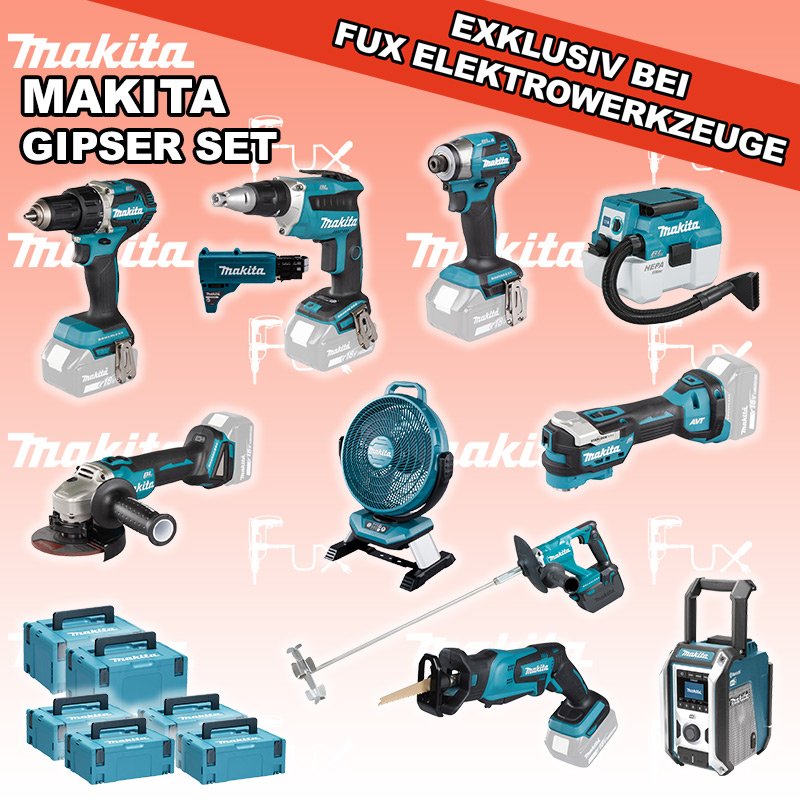 Das Ladenlokal bleibt vom 25. Dezember 2025 bis am 04. Januar 2026 geschlossen. Bestellungen und Lieferungen von Neugeräten werden trotz Ferienabwesenheit in gewohnter Fux-Manier entgegengenommen und ausgeliefert. Zu "Gipser Set" von Makita FUX SPECIAL EXKLUSIV BEI FUX Makita Gipser Set 15 SOLO Bestell- und Artikelnummer: maGipser Set 15 SOLO DDF484ZJ Akku-BohrschrauberAkkuspannung 18 V Drehzahlen 0-500 / 0-2000 U/min Drehmoment hart / weich 54 / 30 Nm Gewicht 1.5 kgInfos DFS452ZJ Akku-Trockenbau-SchrauberAkkuspannung 18 V Drehzahl 0-4000 U/min Werkzeugaufnahme 1/4" (Innensechskant) Gewicht 1.8 kgInfos DUT130Z Akku-RührgerätAkkuspannung 18 V Max. Ø Rührwerk 165 mm Max. Ausgangsleistung 650 Watt Gewicht 2.8 kgInfos DTD173Z Akku-SchlagschrauberAkkuspannung 18 V Anziehdrehmoment 20 / 50 / 170 / 180 Nm Werkzeugaufnahme 1/4" (Innensechskant) Gewicht inkl. Akku 1.2 - 1.5 kgInfos DVC750LZX1 Akku-StaubsaugerAkkuspannung 18 V Kompakt, handlich und leicht zum transportieren 2 Geschwindigkeiten Gewicht inkl. Akku 4.6 kgInfos 2 x DGA506ZJ Akku-WinkelschleiferAkkuspannung 18 V Drehzahl 9000 U / min Scheibendurchmesser 125 mm Gewicht 2,5 kgInfos 2 x DMR115 Akku Radio DAB / DAB+ / FM / Bluetooth®Li-Ion 10.8 - 18V oder Netzbetrieb DAB / DAB+ / FM / mit Bluetooth® Robuste, Schlag, Feuchtigkeit geschützt Gewicht inkl. Akku (EPTA): 4,8 - 5,5 kgInfos DJR183Z Akku-SäbelsägeAkkuspannung 18 V Hubzahl 0-3000 / min Schnittleistung Holz 50 mm / Rohre 50 mm Gewicht 1.6 kgInfos MAKPAC Gr. 3Produktabmessung (L x B x H) 377 x 277 x 176 mm Infos Einsatz für DTM52 Einsatz für DTM52 Makpac Koffer Typ C (821551-8) Infos 2 x MAKPAC Gr. 2Produktabmessung (L x B x H) 395 x 295 x 163 mm Infos Einsatz für diverse Schlagschrauber Einsatz für DDF083, DDF483, DHP483, DTD134, DTD137, DTD146, DTD148, DTD152, DTD153, DTD154, DTD155, DTD170, DTD171, DTP131, DTP141, DTS130, DTS131, DTS141, DTW180, DTW181, DTW250, DTW251, DTW284, DTW285Infos Einsatz für DJR183 Einsatz für DJR183 Makpac Koffer Typ B (821550-0)Infos MagazinschraubenvorsatzMacht aus Schnellbauschraubern in wenigen Sekunden MagazinschrauberInfos OHNE AKKUS UND LADEGERÄT Standard-Ausrüstung In diesem Set enthalten: DDF484ZJ Akku-Bohrschrauber DFS452ZJ Akku-Trockenbau-Schrauber DUT130Z Akku-Rührgerät DTD173Z Akku-Schlagschrauber DVC750LZX1 Akku-Staubsauger 2 x DGA506ZJ Akku-Winkelschleifer 2 x DMR115 Akku Radio DAB / DAB+ / FM / Bluetooth® DJR183Z Akku-Säbelsäge MAKPAC Gr. 3 Einsatz für DTM52 2 x MAKPAC Gr. 2 Einsatz für diverse Schlagschrauber Einsatz für DJR183 Magazinschraubenvorsatz Geliefert im Koffer Zubehör Listenpreis CHF 2'925.00 Fuxpreis CHF 1'982.00 inkl. 8.1% MwSt, inkl vRG Versand CHF 20.00 Kein Grauimport! Produkt bestellen 1 Stück 2 Stück 3 Stück 4 Stück 5 Stück 6 Stück 7 Stück 8 Stück 9 Stück 10 Stück Option: Makita BL 1860 B ( Li-lon Akku ) für CHF 95.- statt CHF 124.-Infos Alle Angaben ohne Gewähr und solange Vorrat reicht!Wiederverkäufer werden? Produkt als PDF NEUHEITAKTION 32%